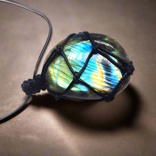 Labradorite Protection Amulet Pendant - Handwoven Net Necklace