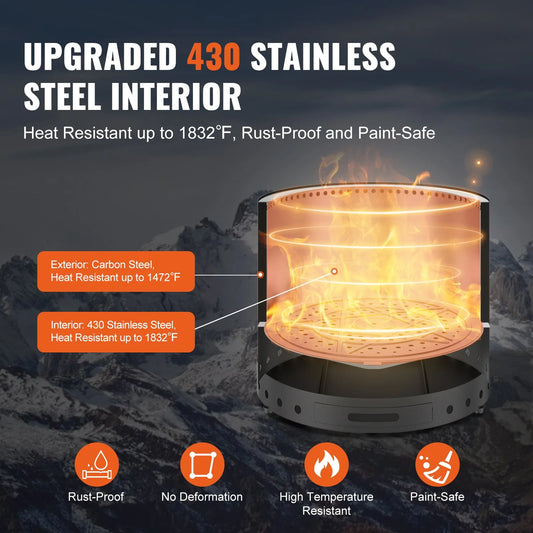 15" Smokeless Fire Pit – Portable Stainless Steel Outdoor Stove