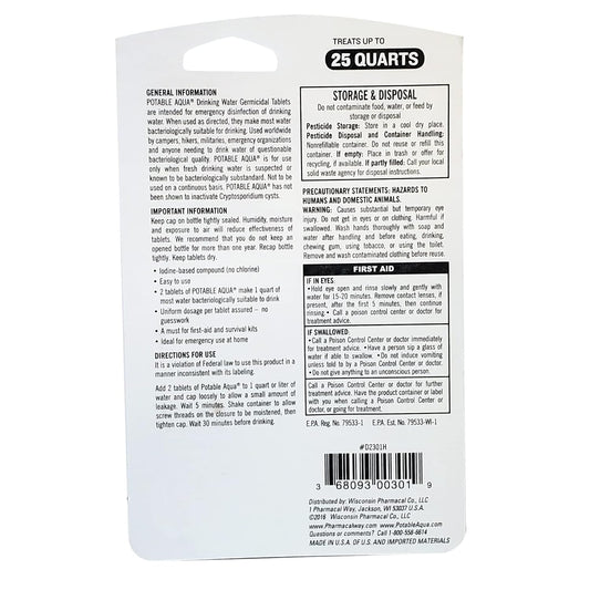 Potable Aqua Water Purification Tablets - 50 Count: Essential for Hiking & Emergency Kits