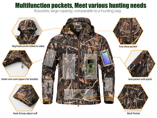 StealthCamo Waterproof Hooded Tactical Jacket - Warm Fleece, Windproof, Silent