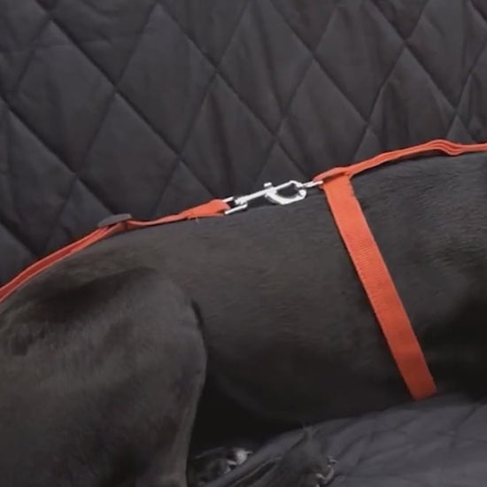 - Includes: Non-slip backing, adjustable headrest anchor, seat anchor, 2 seat belt openings, 2 dog harnesses